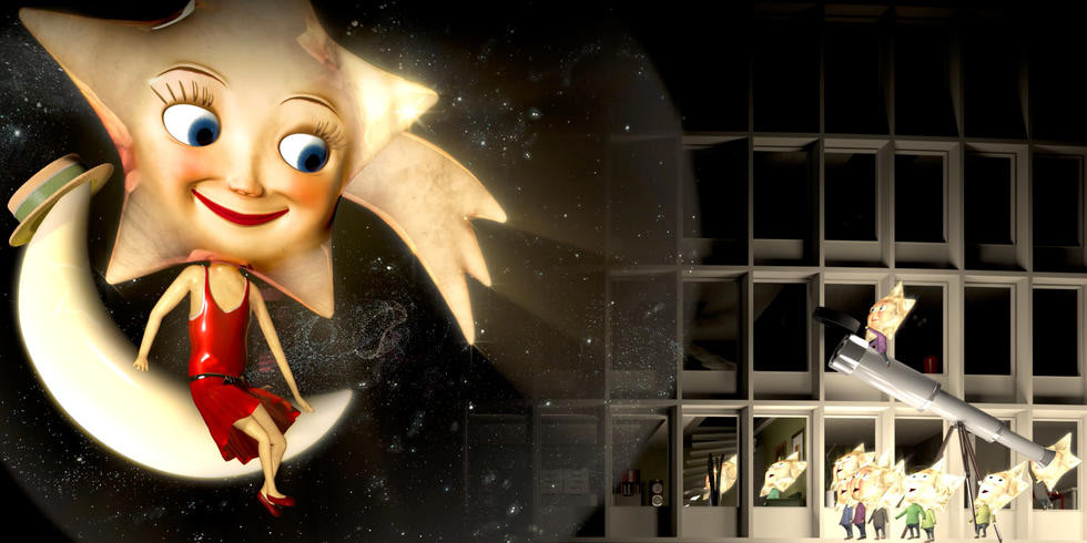 The façade itself became part of the narrative, appearing inhabited by animated stars that the audience followed on their search for the missing Christmas star.